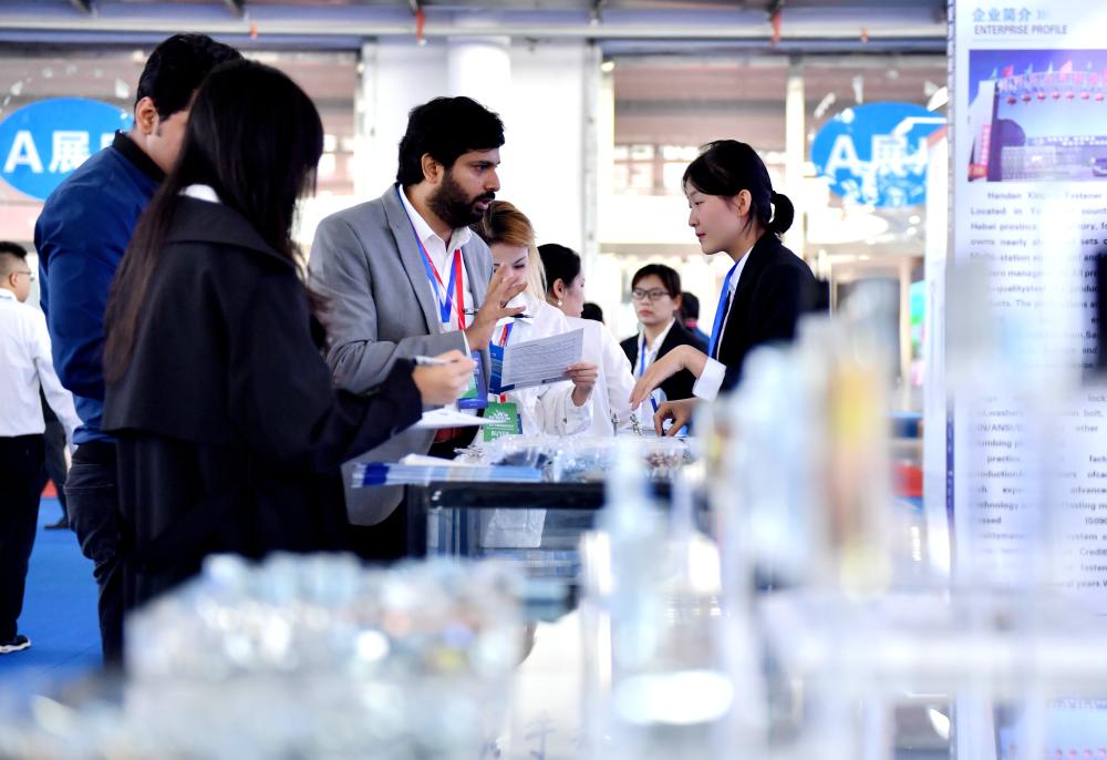 2024年10月10日,采购商(中)正在2024年中国永年紧固件国际采购大会现场领会紧固件产物消息。记者 王晓 摄永年区还积极组织紧固件企业加入、俄罗斯、阿联酋等举办的国际行业展会,永年区紧固件出口跨越11亿元,同比增加11%。一颗颗螺丝,“拧”出了现代工业,也为本地“拧”出了一个400多亿元的大财产;半个多世纪的打螺丝,为临洺关镇、永年区“打”出了一片广漠的致富市场。(视频报道员:李娜、王卫波)。