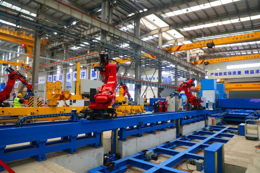 科技海潮奔涌向前,当“像制汽车一样制房子”从愿景变为现实,四川简阳经开区正以智能制制勾勒出建建工业化的将来图景。解码这座“聪慧工场”若何为简阳工业强市注入新动能。正在财产园偌大的出产车间里,保守建建工地的喧哗被科技感十脚的机械运出声代替。激光切割机从动定位扫描,火花飞溅;从动分拣机械人如细密的舞者,精准抓取形态万千的零件,分类码放划一;AGV智能小车沿着智能规划的线穿越,建立起动态物料运输收集;机械人坡口工做坐的机械臂同步完成切割、翻面、打磨;牛腿拆焊工做坐焊接机械臂精准走位,360度肆意翻转,高效焊接。飞溅的火花取机械运出声正在从动化出产中谱写出工业交响曲。这里是即将投产的国内首条全智能钢布局零部件出产线,可实现无人形态下的上料、打码、切割、分拣和拆焊工做,正在局部区域内成功打制“无人工场”和“黑灯车间”,出产效率较保守体例提高30%。正从头定义钢布局制制的尺度。